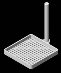 This Teflon dipper device is used to aid in the coating process for square silicon wafers.