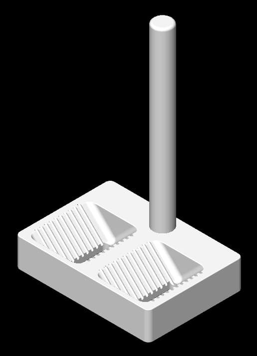This Teflon dipper device is used to aid in the etching process for square silicon wafers.