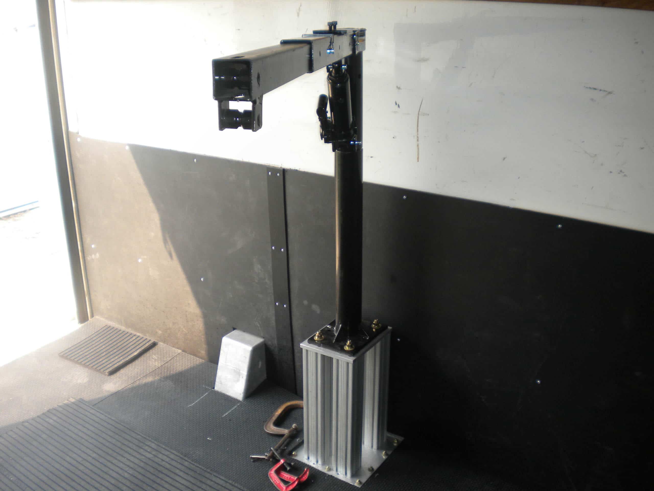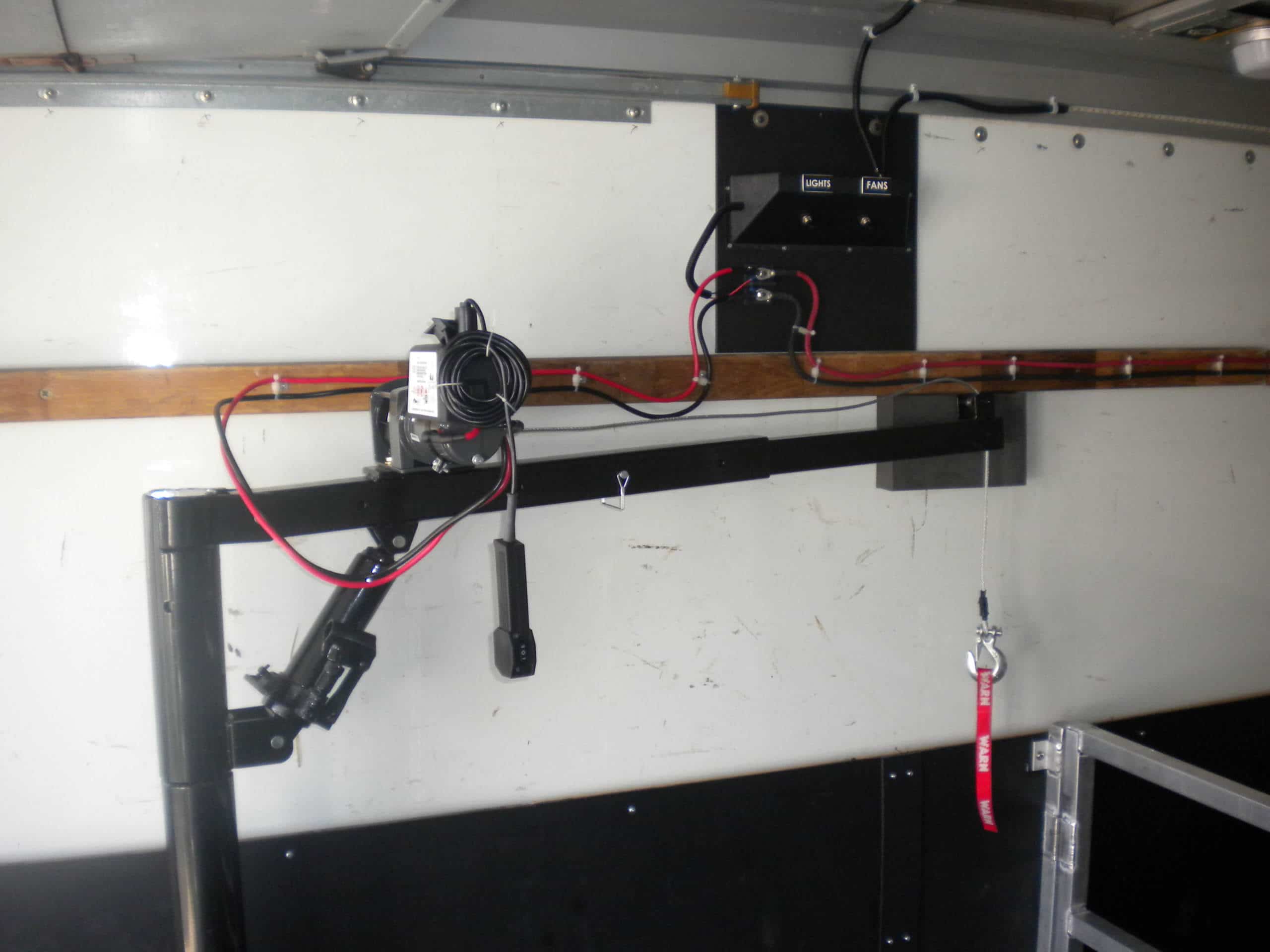 Since pigs can’t fly, we need to have a way to lift the patient to and from the cart to the pen. Once again through the use of 80/20, we were able to design, fabricate, and install an electric hoist to lift the animal safely between the floor and the cart.