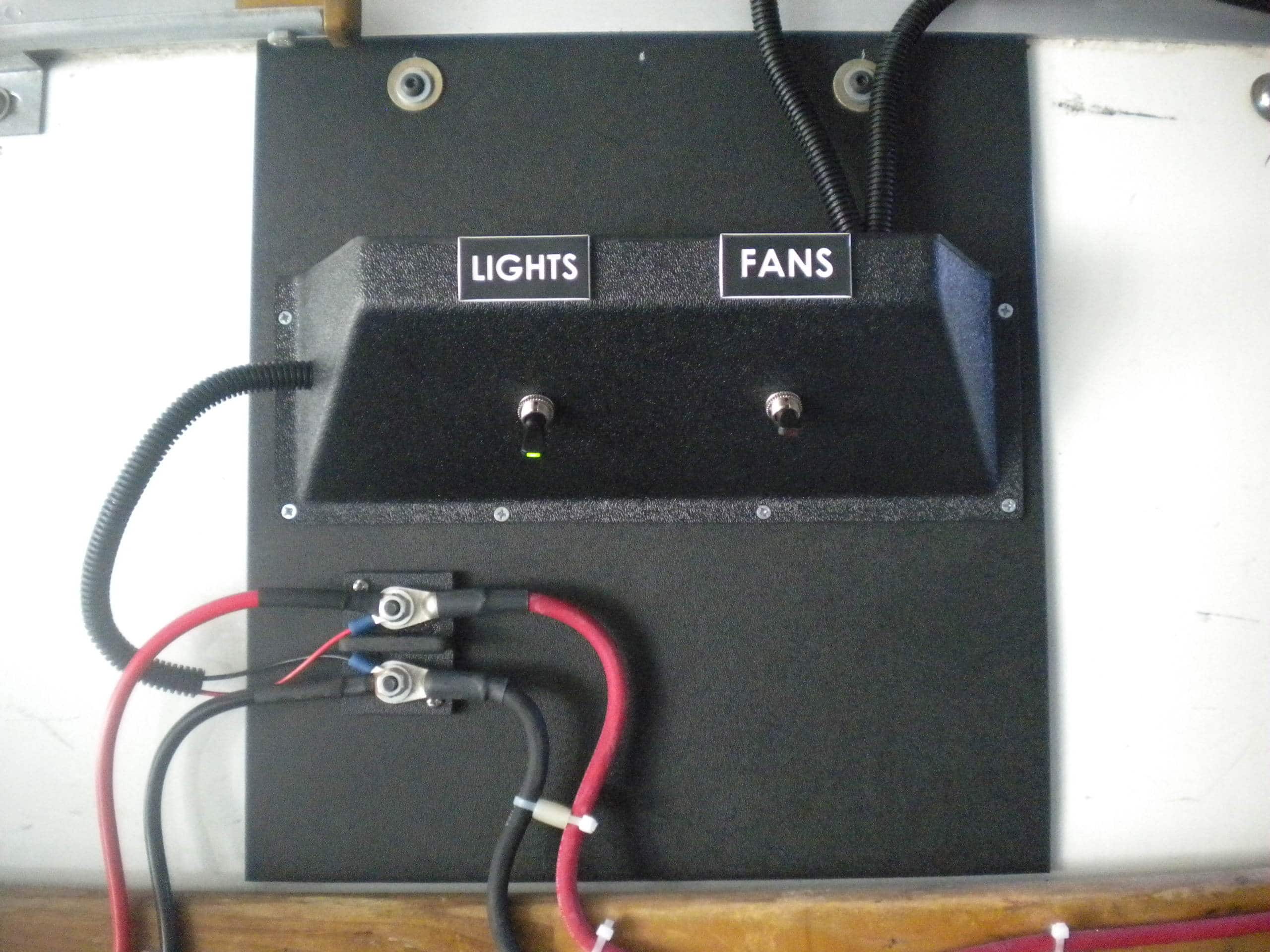 As mentioned, there is some light provided by the ventilation fans but more is needed for the workers to accomplish their tasks. We installed LED lighting over each pen. The switch housing was custom made by us and the nameplates were 3d printed and painted by us as well.